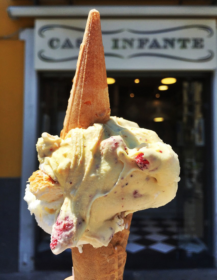 Casa Infante là một trong những tiệm kem ngon nhất ở Ý mà bất cứ ai cũng muôn thử một lần khi đi du lịch Ý. Nằm trong khu phố Via Toledo sôi động, Casa Infante của thành phố Naples nổi tiếng với những viên Gelato cực kì dày, ngậy được làm từ kem và trứng hữu cơ cùng những nguyên liệu độc đáo theo mùa. Thế nhưng, điều làm cho Casa Infante thực sự khác biệt chính là những vị kem hiếm nơi nào có như bánh quả mơ được làm từ những trái mơ chín từ Vesuvius hay những viên gelato có vị vả trắng và ricotta được làm từ những trái vả ngào đường từ Cilento. Đặc biệt, một chiếc bánh hoa cúc nhân gelato sẽ là mảnh ghép hoàn hảo cho một hành trình trải nghiệm gelato trọn vẹn tại Naples.