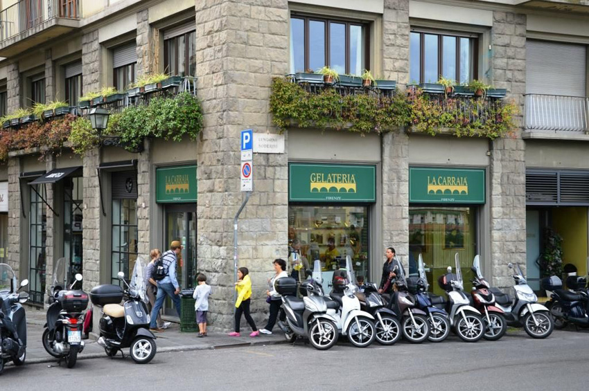 Thuộc sở hữu của một cặp vợ chồng, Gelateria La Carraia - được đặt theo tên của người hàng xóm Ponte Alla Carraia, cây cầu lâu đời thứ hai của thành phố - được khai trương vào năm 1990 và hiện có hai địa điểm ở Florence. Thường có một dòng dẫn vào cửa hàng đơn giản, sáng sủa; người dân địa phương và khách du lịch đều yêu thích nơi này vì hương vị của nó, từ các loại cổ điển như stracciatella và sô cô la đến các loại sáng tạo hơn như bạc hà After Eight, ricotta và lê. Ngoài ra còn có ba món đặc sản: sô cô la trắng với sốt hồ trăn; kem với sốt cam và sô cô la đen; và kem với bánh quế và sô cô la.
